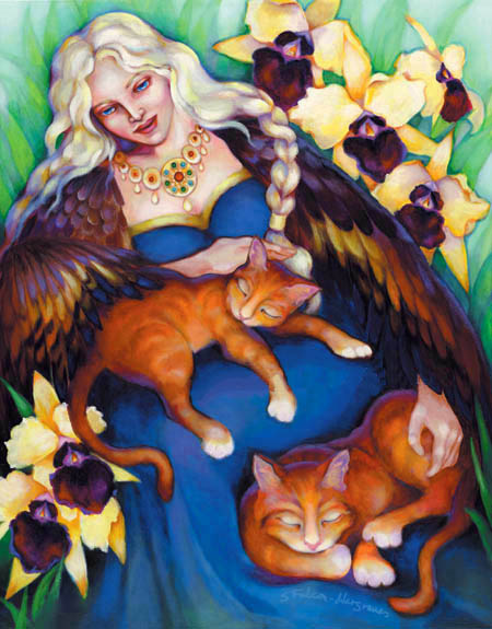 Women's faces adapted from portions of paintings by Edward Robert Hughes (British, 1851-1914).